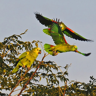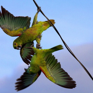 Habita florestas úmidas, savanas, floresta de galeria, áreas cultivadas com árvores e matas com palmeiras, até 1.600 m. Comum em casais ou bandos. Macho e fêmea voam tão juntos um do outro que o casal parece ser uma grande e fabulosa ave de quatro asas, o que se observa inclusive quando estão em bando. A melhor defesa que possui é ficar imóvel e calado. É freqüentemente “canhoto”, razão pela qual o pé esquerdo é melhor desenvolvido. Boceja ocasionalmente. Para dormir reúne-se em bandos.