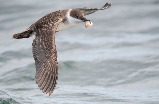 Alimenta-se de peixes e lulas e frequentemente se associa a golfinhos e baleias para se alimentar, apresentando grande capacidade de mergulho (superior a 10 m), podendo permanecer submerso por 12 s.