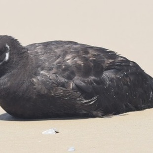 Semelhante a pardela-preta (Procellaria aequinoctialis). Mede 55 cm, peso de 1 a 1,3 kg ( média de 1,2 kg ). Significativamente menos que as pardelas-pretas das Ilhas Geórgia do Sul. Inteiramente de cor marrom-cinzento, com áreas brancas na cabeça, na face e principalmente ao redor das olhos, de extensão variável e já visível nos ninhegos. Bico amarelado com desenho preto; pernas e pés pretos. Bastante parecida com a Pardela-preta (Procellaria aequinoctialis ), sendo até a pouco tempo considerada uma subespécie da mesma.