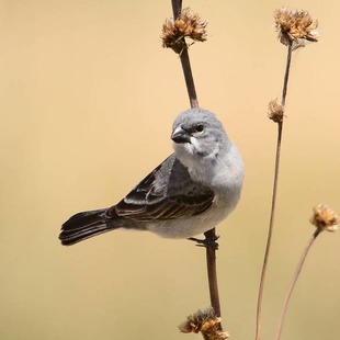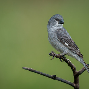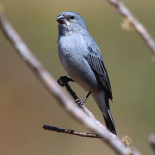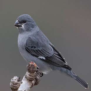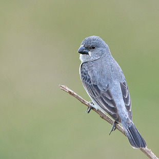 Mede cerca de 10,5cm de comprimento. O macho é cinza-azulado, as fêmeas e jovens pardos mais claros nas partes inferiores. A coloração do bico varia entre o negro, o cinzento e o amarelo.