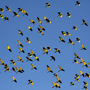 Quando em bando vocaliza de forma bem característica.
