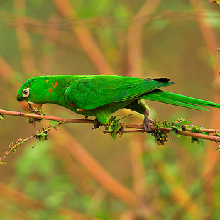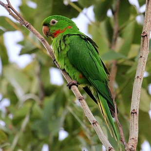 Nos jovens as penas vermelhas da cabeça e sob as asas são ausentes, sendo de cor verde.