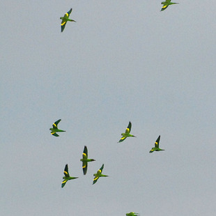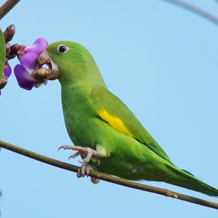 Para os desavisados será considerado como sendo o periquito-rico (Brotogeris tirica), com o qual é extremamente parecido, exceto pela marca amarela no ombro. Para complicar é comum vê-lo na cidade de São Paulo junto a esses periquitos. Torna-se a espécie predominante mais para o norte e oeste do estado.