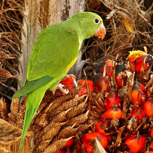 Alimenta-se de frutos, sementes, flores e néctar.