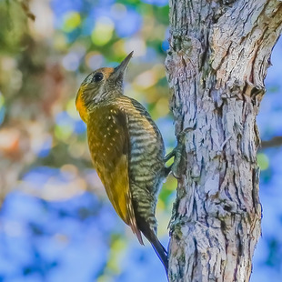 Seu nome comum em inglês refere-se à nuca amarela de ambos os sexos - uma característica não compartilhada por qualquer outra espécie do gênero Veniliornis.