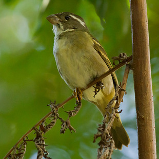Mede 14cm. de comprimento. Maior representante do gênero. Seu diferencial é a região malar pronunciada. Há muita variação no colorido, ao que parece devido à idade. Canto violento, uma espécie de açoitar. As fêmeas são parecidas com os machos porém mais esverdeadas e sem a lista branca pós-ocular.