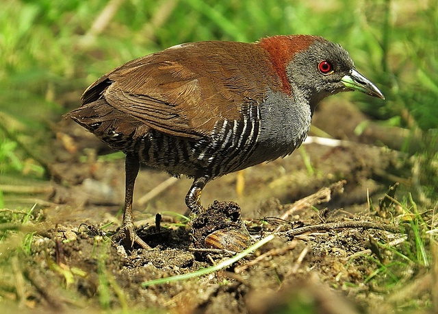 Captura artrópodes e minhocas no solo úmido e consome sementes de gramíneas.