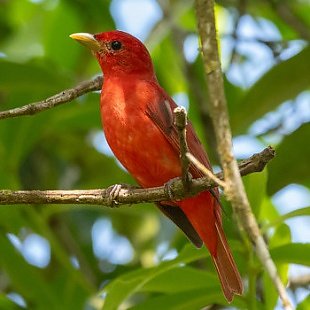 O sanhaçu-vermelho,pode também é chamado de sanhaçu-verão como o nome em inglês diz summer tanager.