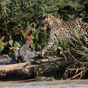 Durante a época de reprodução o adulto emite uma forte voz, que lembra o esturro da onça pintada ou o mugir de um boi.