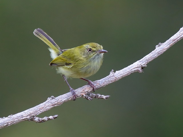 Mede até 12 cm de comprimento. É um pássaro pequeno de olhos esbranquiçados.