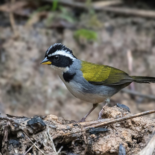 Mede 15 cm de comprimento. O macho tem a parte inferior branco-acinzentada com uma faixa preta à altura do peito, formando um colar, há amarelo nos ombros e o bico é preto; a fêmea apresenta as partes inferiores de coloração bege com os lados amarronzados, e a faixa no peito não tão evidente e, às vezes, interrompida. Substitui o tico-tico-de-bico-preto nas serras e encostas da Serra do Mar. Difere deste pela mandíbula amarelada e não negra e por apresentar as dragonas das asas menos amareladas.