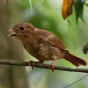 Varia de incomum a comum no estrato inferior de florestas úmidas e bordas de florestas. Vive aos pares ou em pequenos grupos familiares.