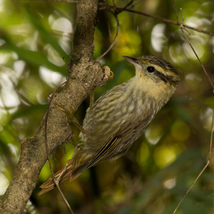 Observação feita em campo, tem cerca de 10 cm, faixa supra-ciliar que se junta a coleira esbranquiçada, peito esbranquiçado rajado de marrom.