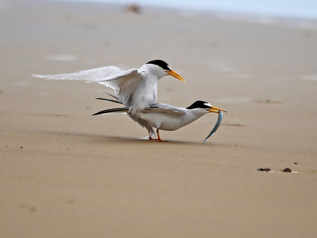 Durante um dia de observações em conjunto com Adams Serra, pudemos observar ao menos 3 predatores de ninhos em potencial, que foram agressivamente atacados ao se aproximarem, por machos de S. antillarum (exceto crustáceo, que foi atacado pelo casal), enquanto que fêmeas e filhotes permaneciam imóveis na areia: