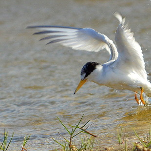 Caça principalmente em águas rasas dos estuários e lagoas, onde peixes menores são abundantes. Em baías e lagoas da Califórnia do Sul e norte do México, a presa favorita incluem anchovas. Às vezes, trinta-réis alimentam o perto da costa, em mar aberto, especialmente na proximidade de lagoas ou bocas da baía. Os adultos não necessitam de cobertura, de modo que eles geralmente descansam no chão aberto.