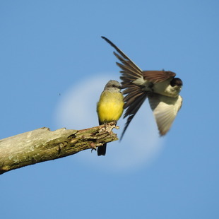 Ressalta-se que alguns tiranídeos tidos como migrantes intracontinentais (Ridgely e Tudor, 1994; GROMS, 2008) podem ser sedentários no Pantanal. Porém, populações de regiões mais meridionais da América do Sul, como Rio Grande do Sul, Argentina, Uruguai, Paraguai e sudeste da Bolívia, fugindo do inverno austral, em direção à Amazônia, podem se misturar a essas aves na planície. Dentre elas destacam-se as guaracavas (Elaenia albiceps, E. chiriquensis, E. cristata, E. obscura e Sublegatus modestus), os suiriris (Suiriri suiriri, Satrapa icterophrys e Tyrannus melancholicus), os alegrinhos (Serpophaga subcristata e Inezia inornata), o bagageiro (Phaeomyias murina), os papa-moscas (Polystictus pectoralis e Contopus cinereus), o filipe (Myiophobus fasciatus) e o gritador (Sirystes sibilator).