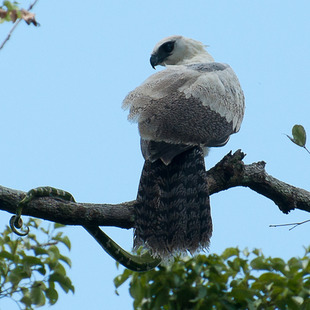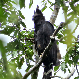 O trabalho mais tradicional e completo sobre a atividade reprodutiva de M. guianensis é o de Bierregard (1984). Este autor localizou um ninho próximo a Manaus, Brasil, numa reserva florestal do Instituto de Pesquisas da Amazônia – INPA, na BR-174 (Amazonas-Roraima). Acompanhou um único ciclo reprodutivo da espécie, e o desenvolvimento de um filhote que, por fim sumiu do ninho, tendo sido provavelmente predado ou morto. Um fato interessante neste casal observado é de que a fêmea apresentava o “morfo” negro da espécie, enquanto o macho apresentava “morfo” claro. Este casal produziu dois ovos, e apenas um filhote nasceu. O ninho estava em uma árvore “jararana” (Lecythidaceae sp.), a aproximadamente 28 metros do solo.