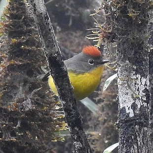 Tem hábitos similares a mariquita-cinza(Myioborus miniatus), embora seja menos ativo. Vive em florestas úmidas montícolas.