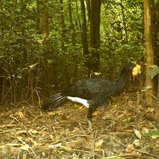 Alimenta-se de frutos que consegue nas árvores. Não costuma procurar no chão, como outros mutuns.