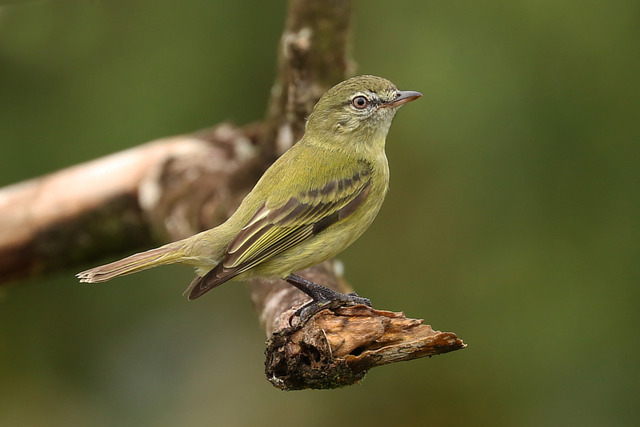 Mede 12 centímetros. Diferencia-se das espécies do gênero Phyllomyias pelo píleo oliváceo e asas com marcas quase inconspícuas, sem faixas e bandas discerníveis. Seu bico é curto e massivo.