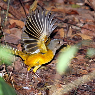 Segue correições de formigas. Vive aos pares ou em pequenos grupos caçando frutos e insetos.