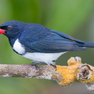 Geralmente é visto em pequenos grupos de 3 a 6 indivíduos que acompanham bandos mistos, comendo principalmente frutas, mas também alguns insetos.