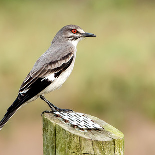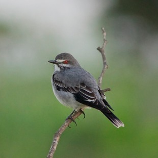 Tem 22,5 centímetros, é cinzenta e branca, olho avermelhado (castanho nos filhotes). Quando voa revela um desenho branco e preto muito destacado na asa.