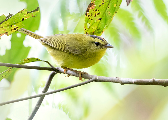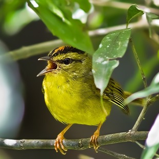 Forrageia ativamente pelos galhos e pela folhagem procurando insetos em bandos mistos.