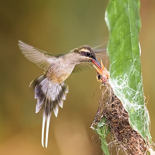 Na época do acasalamento os machos vocalizam em arenas comunitárias. Seu ninho tem forma cônica alongada, terminando em um apêndice caudal mais ou menos longo, servindo de contrapeso. É feito de material macio como paina e detritos vegetais que são acumulados em espessa camada de material. O ninho é suspenso à face interior das folhas de palmeiras, samambaias, musáceas, helicônia, etc., em raízes finas pendentes sob barrancos sombreados, geralmente a 1 metro de altura. Com o peso do ninho dobra-se o folíolo ou a ponta da folha, ficando o restante da mesma protegendo o ninho. Põe geralmente 2 ovos alongados e brancos, de casca áspera, que são chocados pela fêmea, com um período de incubação de 15 a 18 dias. Diferentemente das outras espécies do gênero, seus ovos ficam completamente visíveis no ninho. Os filhotes deixam o ninho com aproximadamente 20 dias.