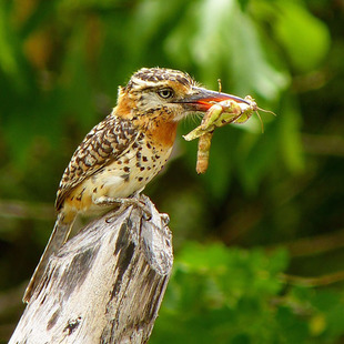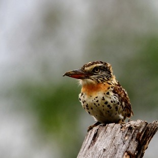 Difere do joão-bobo (Nystalus chacuru) por não ter branco na face e pelas pintas negras no peito e na barriga.