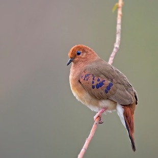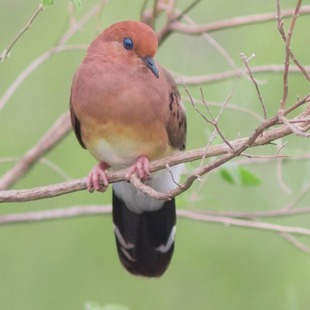 É um pequeno columbídeo com tamanho entre 15,5 e 17 centímetros de comprimento e cor predominantemente castanha.