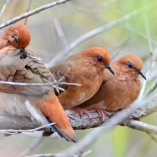 As crias apresentam manchas amareladas nas asas. Espécie afim: rolinha-roxa (Columbina talpacoti).
