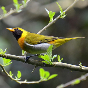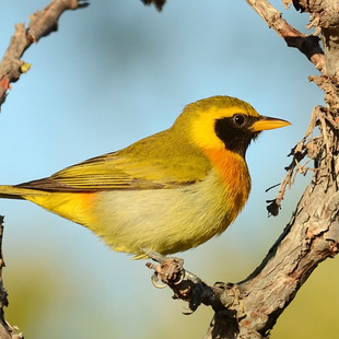 Mede cerca de 13 cm de comprimento e pesa 10 g. O macho possui as laterais da cabeça e a garganta pretas, uma estria amarela sobre o olho e o peito com um colar ferrugíneo e a fêmea apresenta a cabeça olivácea e o peito amarelado.