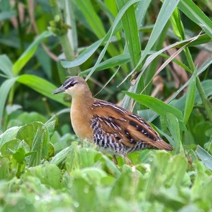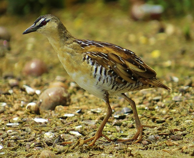 É uma representante muito pequeno da família Ralidae, com coloração do peito pardo amarelada. As pernas são amarelas os pés possuem dedos bastante longos que permitem seu caminhar sobre as plantas aquáticas. A pequena cabeça apresenta uma coroa preta e listra ocular. A sobrancelha é branca. Apresenta nos flancos, faixas pretas e brancas. O dorso é castanho amarelado estriado de preto e branco.