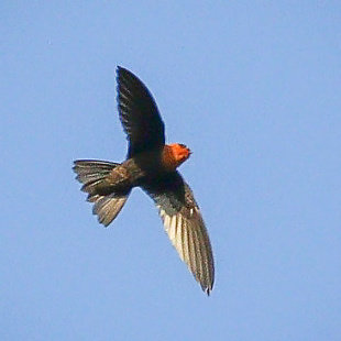 Mede 16 centímetros. Sua plumagem contrasta o marrom-fuligem das partes inferiores com os tons de cobre avermelhado do pescoço, como uma coleira ruiva. Sua cauda é longa e birfucada.